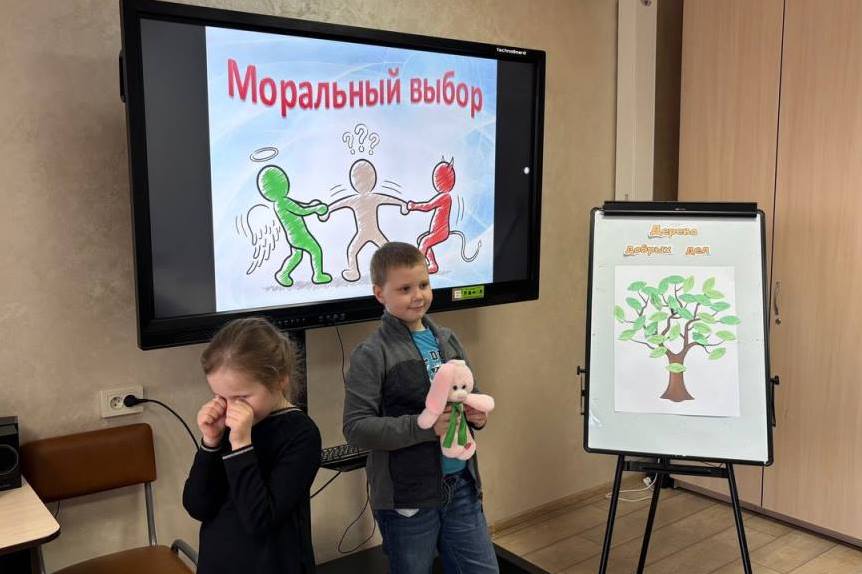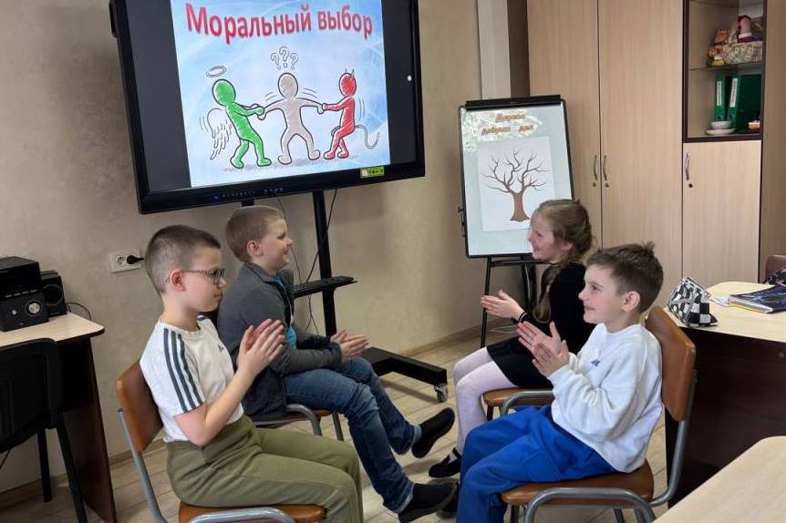 В субботу 4 апреля в Центре творчества прошла интерактивная игра «Моральный выбор» для учащихся объединений по интересам. Ребята проживали сложные жизненные ситуации через сказки и мини-сценки, учились слушать друг друга и находить выход без обид и в итоге сделали главный вывод: «Правильно — это когда внутри спокойно».